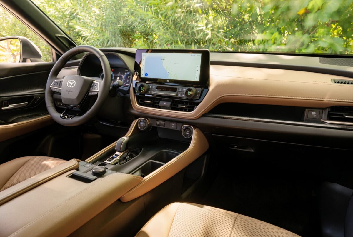 El Grand Highlander híbrido en todos los niveles de acabado tiene una pantalla táctil de infoentretenimiento de 12,3 pulgadas (32 centímetros), conexión inalámbrica con Amazon