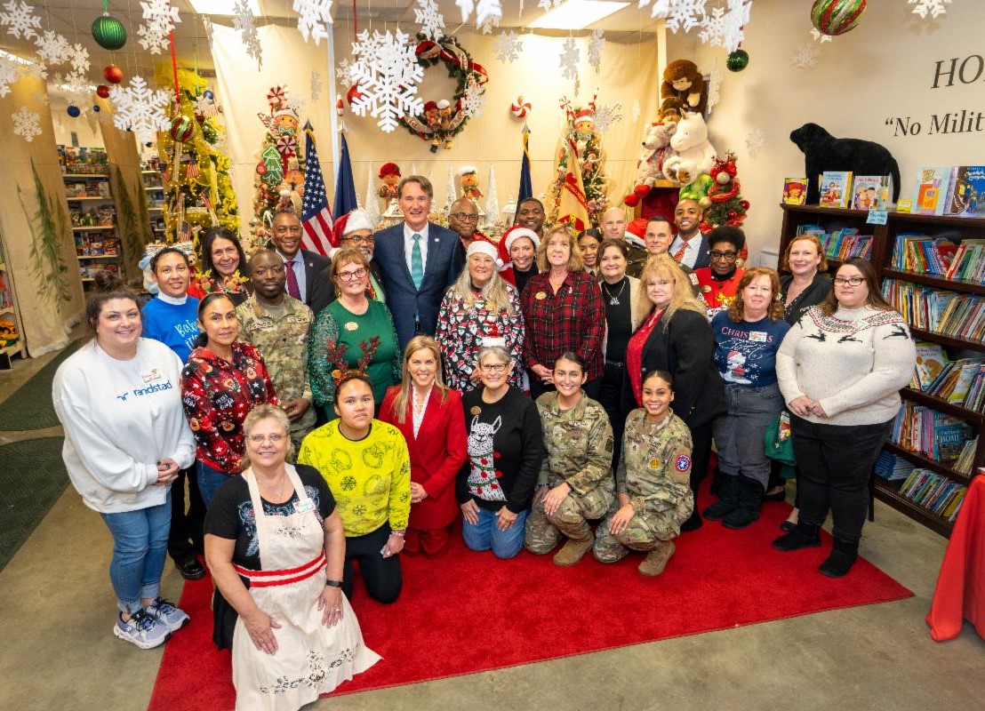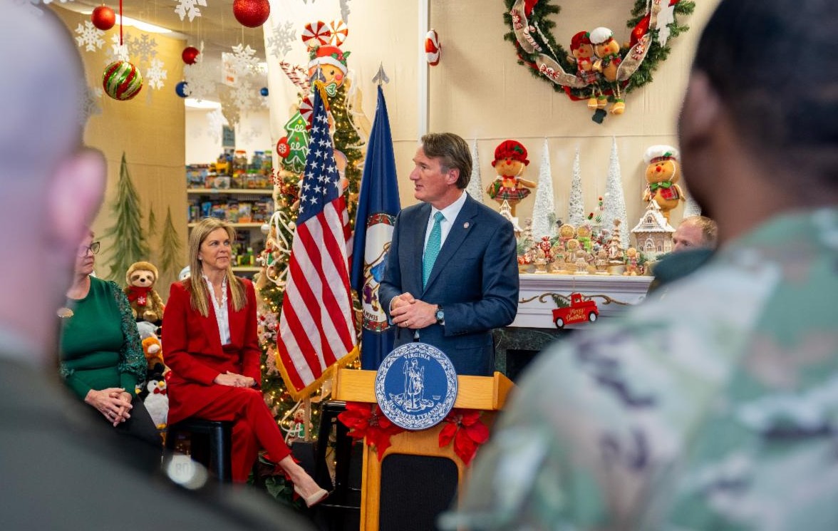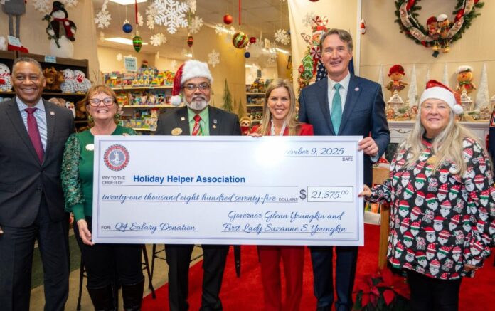 FORT LEE, VA – El gobernador Glenn Youngkin y la primera dama Suzanne S. Youngkin visitaron la juguetería Holiday Helper de Fort Lee para entregar $21,875 a la Asociación Holiday Helper, una organización sin fines de lucro dedicada a garantizar que los niños de familias militares experimenten la alegría de la temporada navideña.