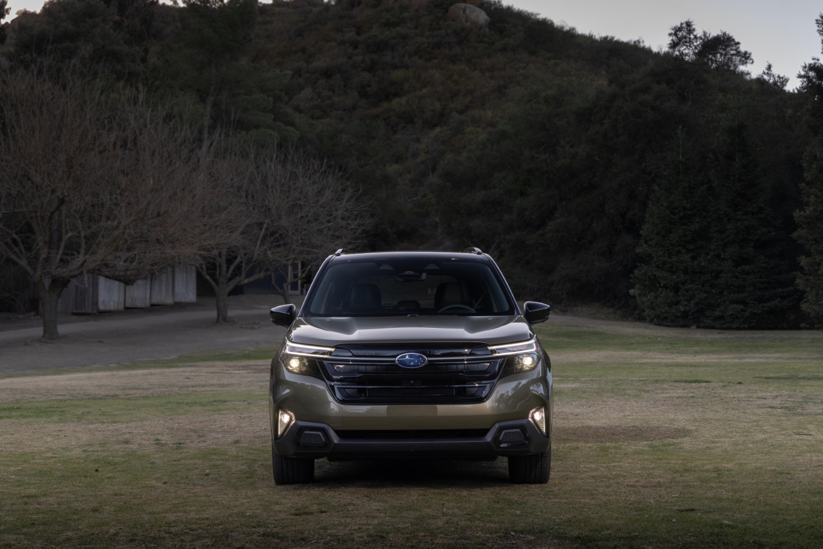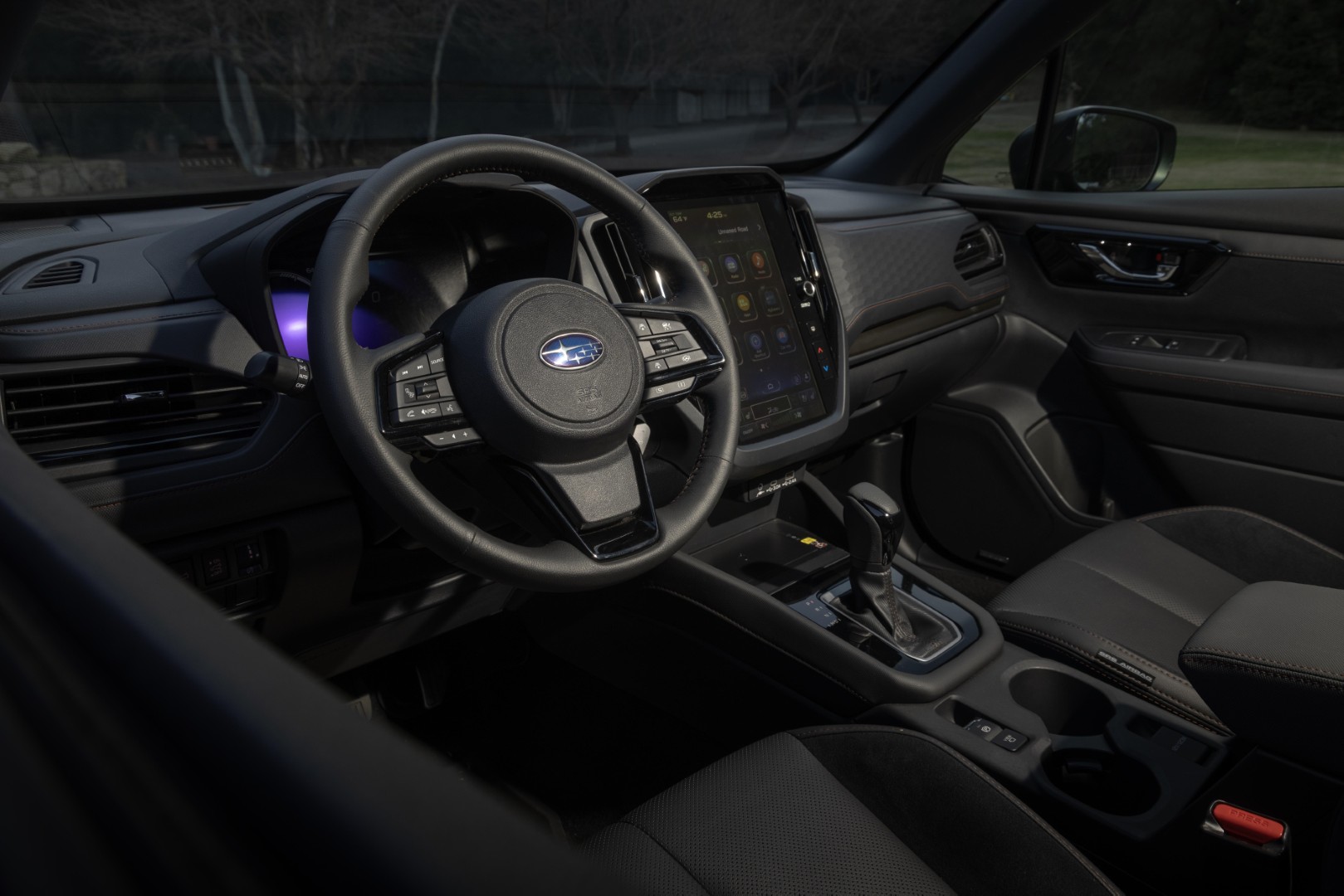 Una parrilla más ancha y vertical incorpora luces diurnas ultrafinas sobre faros LED que se envuelven en los salientes más pronunciados de los guardabarros. Subaru afirma que ningún panel de la carrocería ni de vidrio es igual en el modelo 2025.