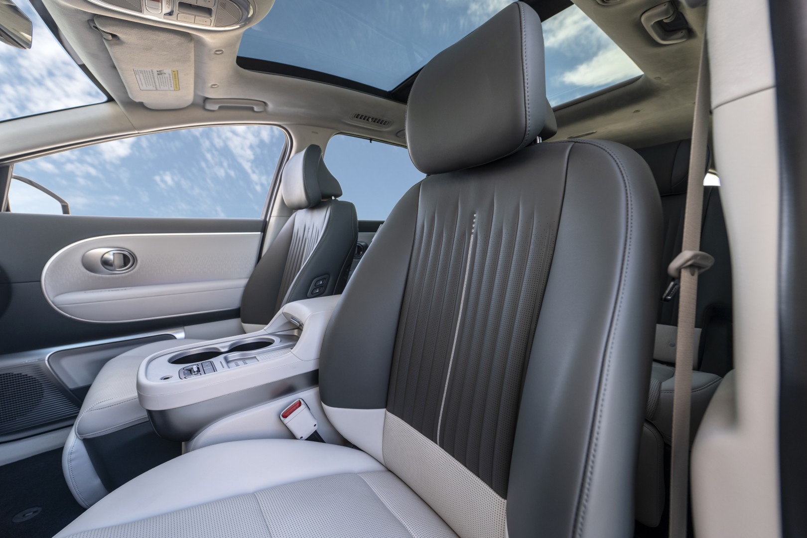 Abundan las formas ovaladas en el interior, en correspondencia con lo que observamos en el exterior. Hyundai lo denomina “diseño elíptico”, con elementos curvados en todo el habitáculo excepto la pantalla del sistema de infoentretenimiento y el cuadro de instrumentos, que son muy rectangulares.