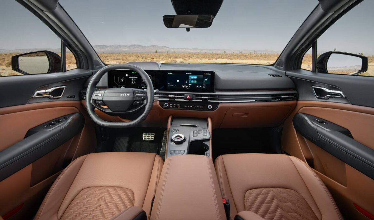 Los asientos delanteros del Sportage con calefacción y ventilación me parecieron muy cómodos, con un amplio espacio para la cabeza y las piernas, y encontré mucho espacio también en el asiento posterior. No solo es amplio para los pasajeros, pues el espacio de carga, aunque se ve reducido por la batería, sigue siendo bastante amplio, con 39,5 pies cúbicos de capacidad tras los asientos traseros, uno de los más generosos entre los SUV competidores.