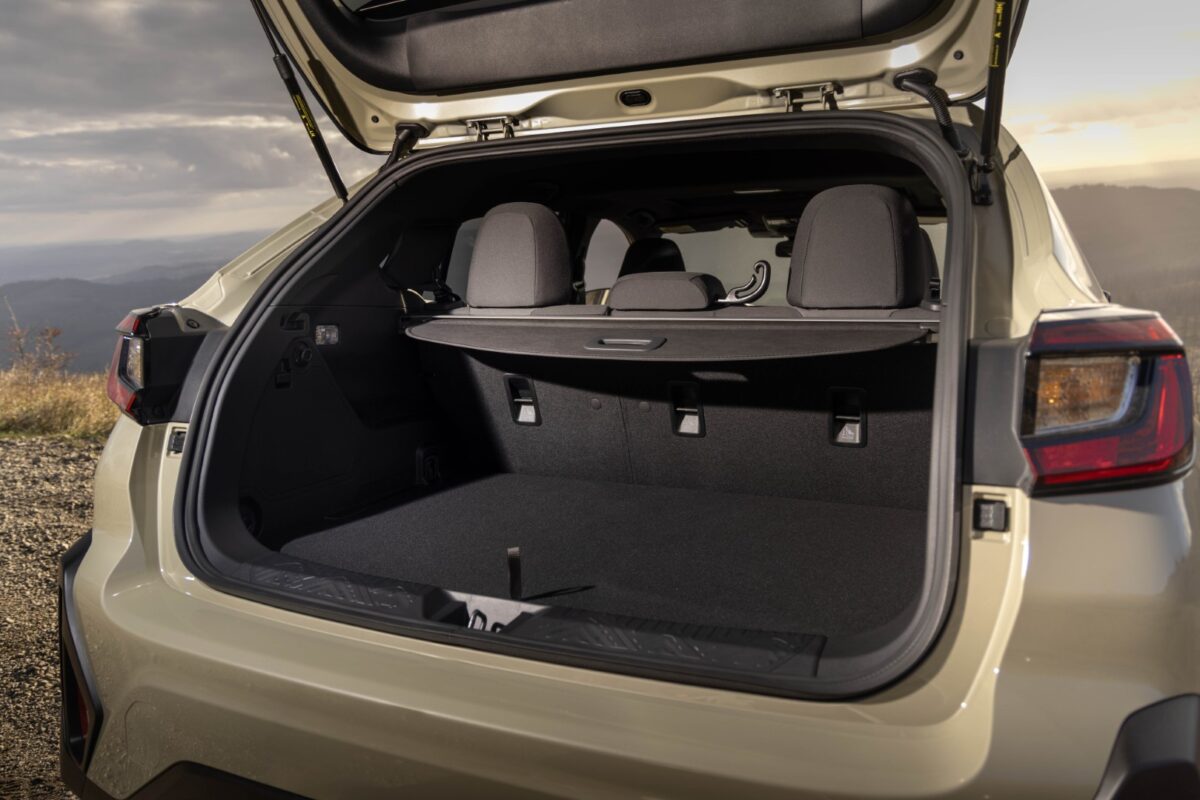 La batería del Crosstrek Hybrid 2026 es significativamente más pequeña, lo que se traduce en un compromiso más equilibrado. Este SUV crossover ofrece 18,6 pies cúbicos de espacio de carga detrás de los asientos traseros, que se amplía a 54,7 pies cúbicos cuando estos están plegados. En comparación, las versiones no híbridas ofrecen 19,9 y 54,7 pies cúbicos.