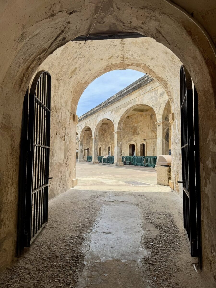 A diferencia del Castillo San Felipe del Morro, que defendía la entrada marítima de la bahía, San Cristóbal tenía la misión de resguardar a la ciudad desde tierra firme. Sus gruesos muros de piedra, fosos profundos, túneles secretos y garitas estratégicamente ubicadas lo convirtieron en la fortificación más grande construida por España en América. Cada rincón del castillo cuenta una historia de vigilancia, estrategia y resistencia.