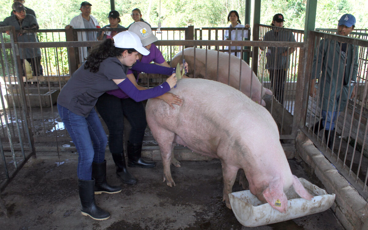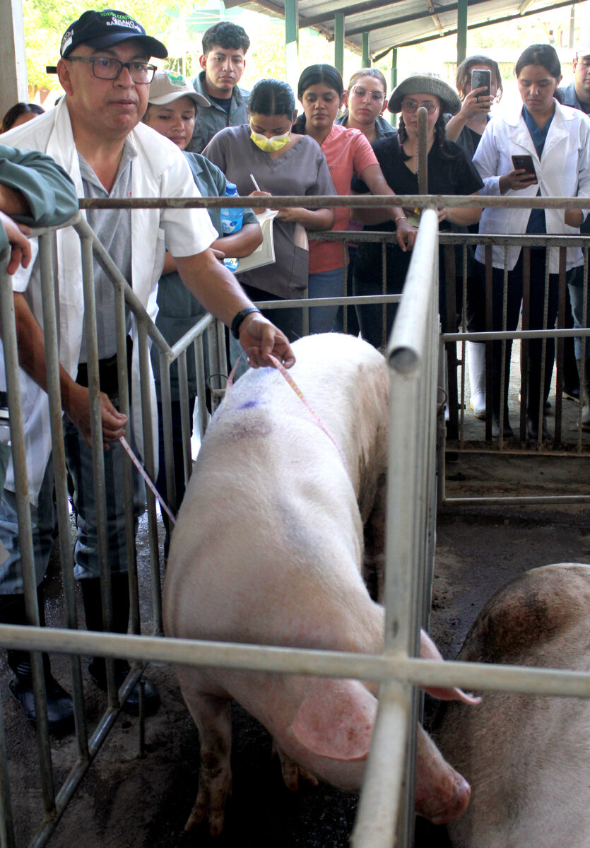 “En el país, ya hay granjas tecnificadas sobre el tema. Esto permite a los estudiantes de las carreras de Ingeniería Agronómica, Veterinaria y Zootecnia y Agro industrial, que puedan romper esquemas del manejo de cerdos de granjas. Su carne, es un rubro importante a nivel nacional, le sigue la de res y pollo. Es criado de forma domestica comercial”.