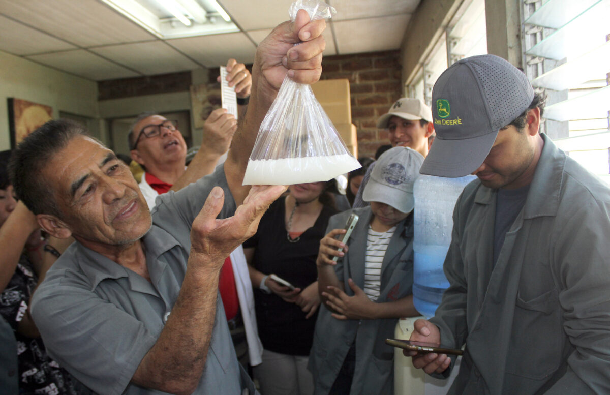 El producto se coloca a la hembra, desde un catéter en su aparato reproductor para preñarla. Es un proceso que se hace una vez a la semana. Los estudiantes se sorprenden de ver ese proceso técnico.