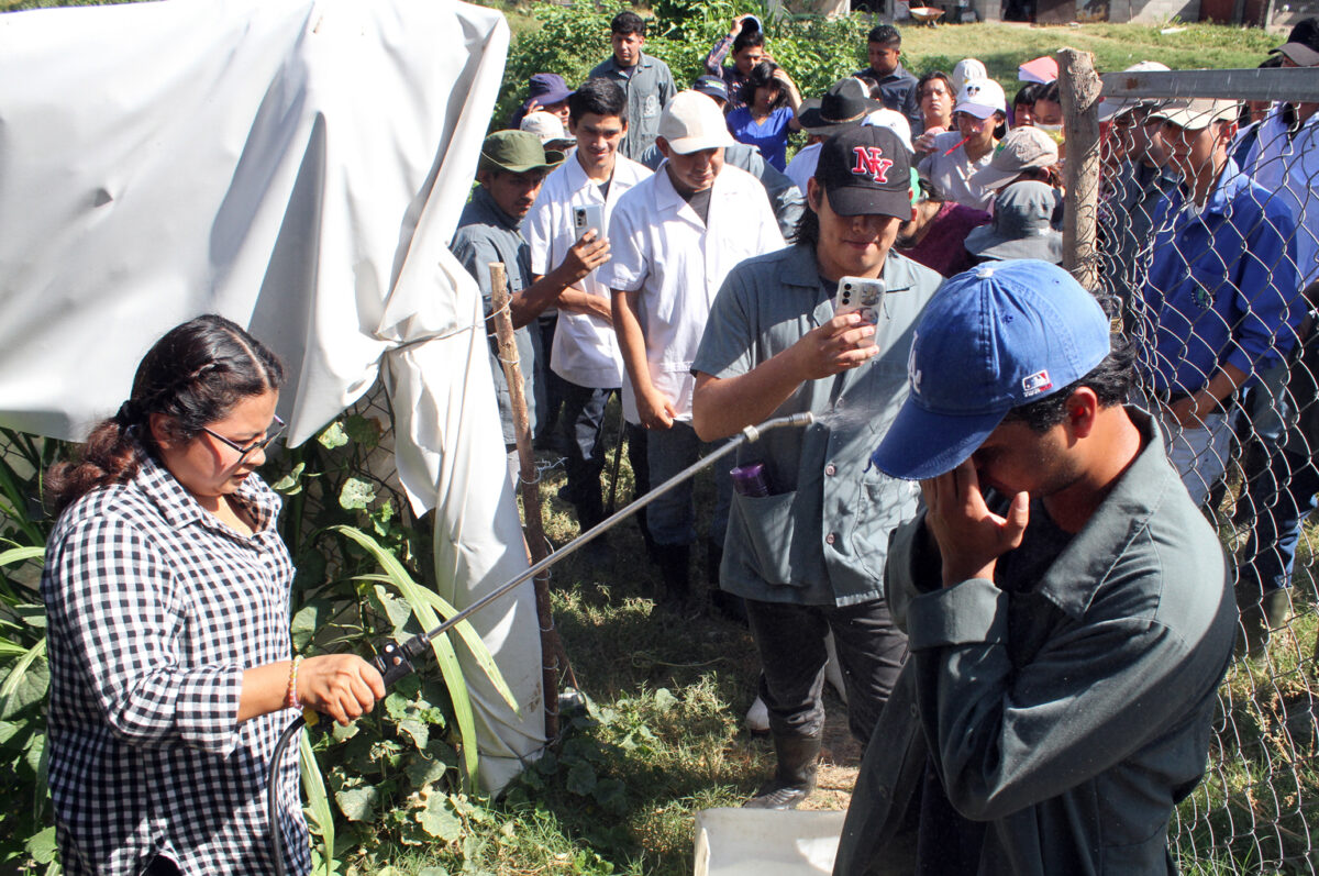 Llegamos a la galera, donde están instalados los cerdos por módulos. Los estudiantes preparan sus herramientas de trabajo, tienen un gran reto, hacer sus prácticas profesionales, junto al ingeniero, Ernesto Marín, quien les imparte la materia, Ganado Porcino. Desarrollarán la práctica, Caracterización de instalaciones, pesaje y evaluación de condición corporal de las reproductoras.
